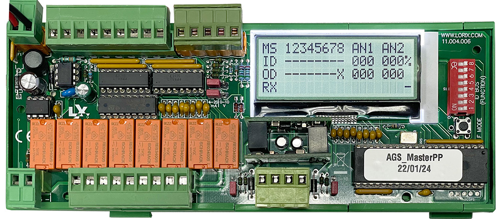 Un display LCD permette di visualizzare lo stato degli ingressi, delle uscite e della comunicazione.